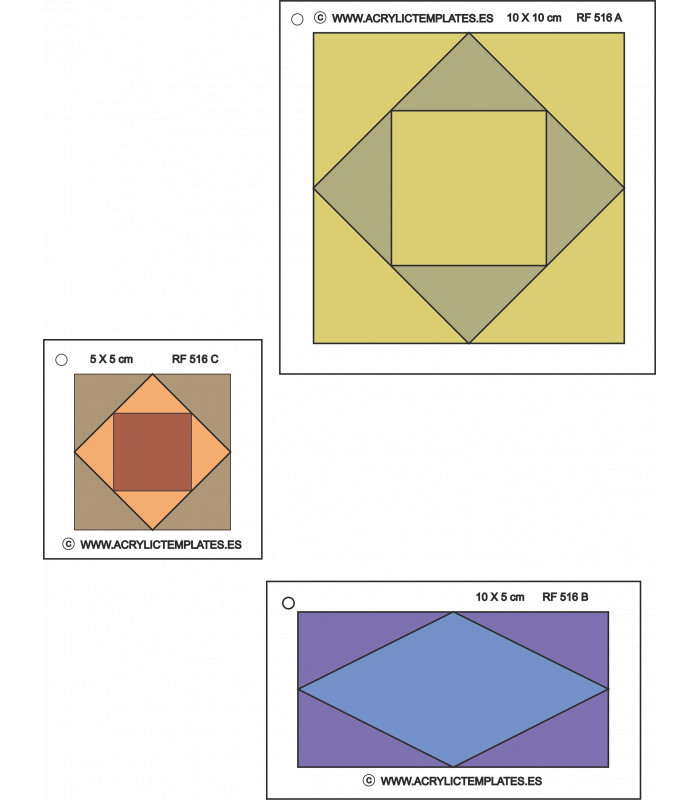 Plantillas de Log Cabin en metacrilato para dibujar proyectos.
